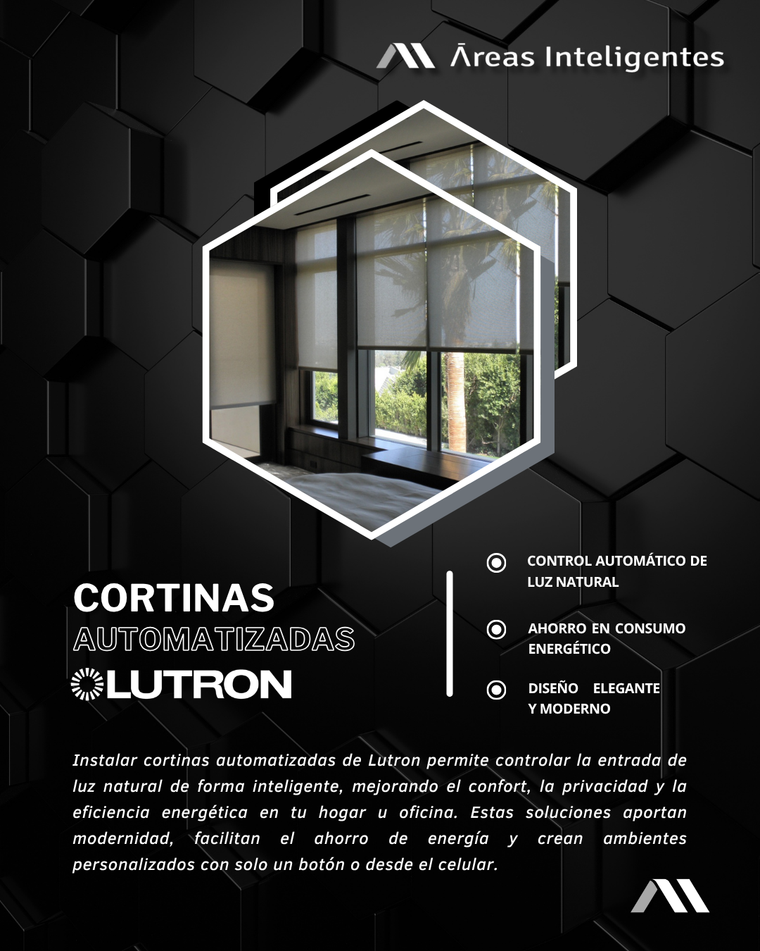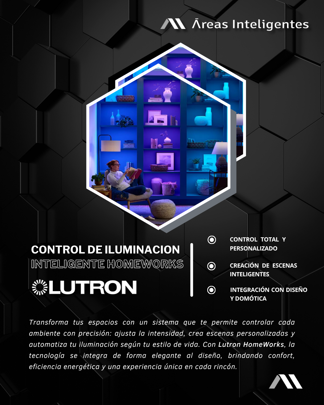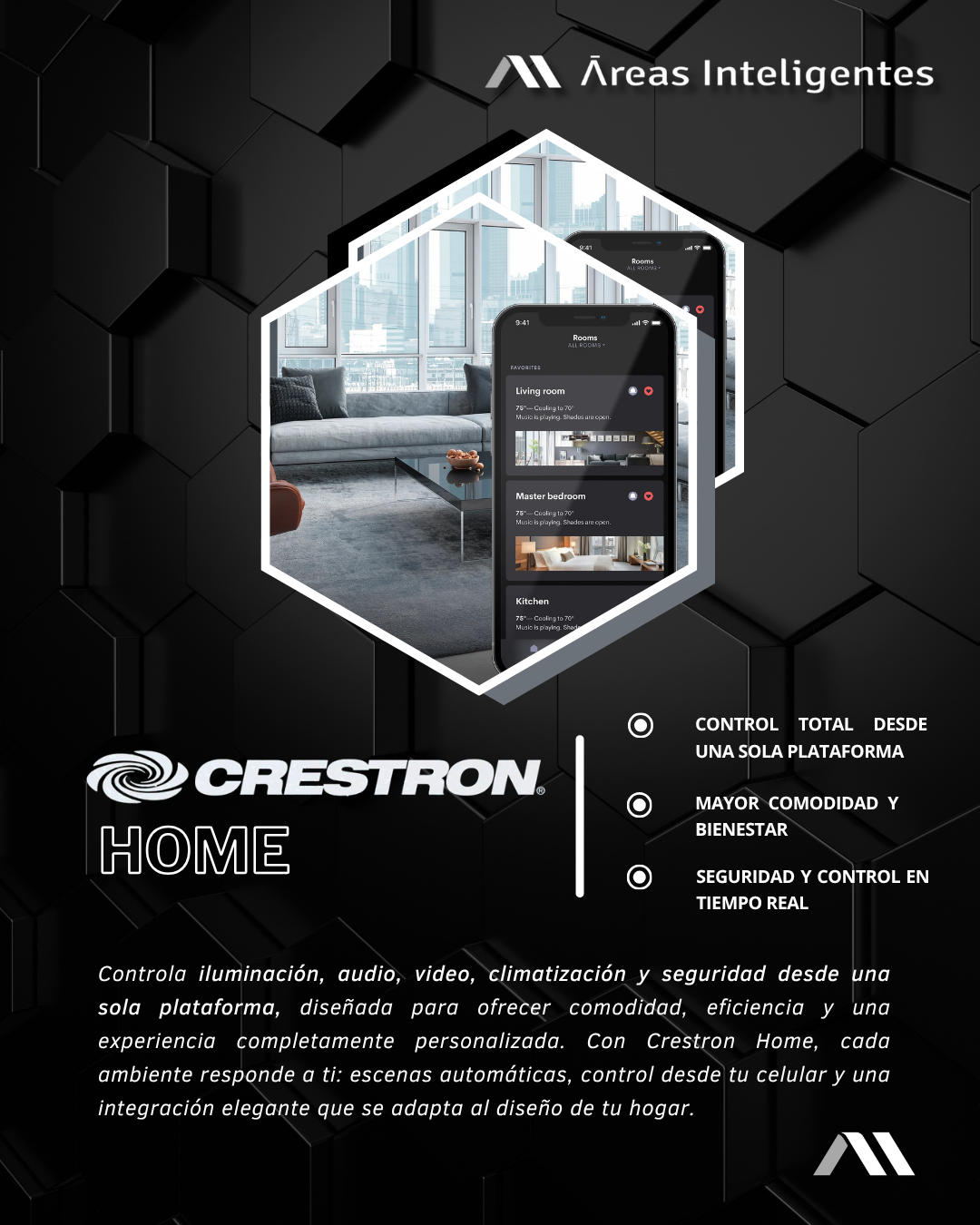 Somos una empresa dedicada a crear espacios cómodos, seguros y sustentables a través de nuestros servicios de automatización y domótica. Hacemos que tus espacios sean tan inteligentes como te lo puedas imaginar.